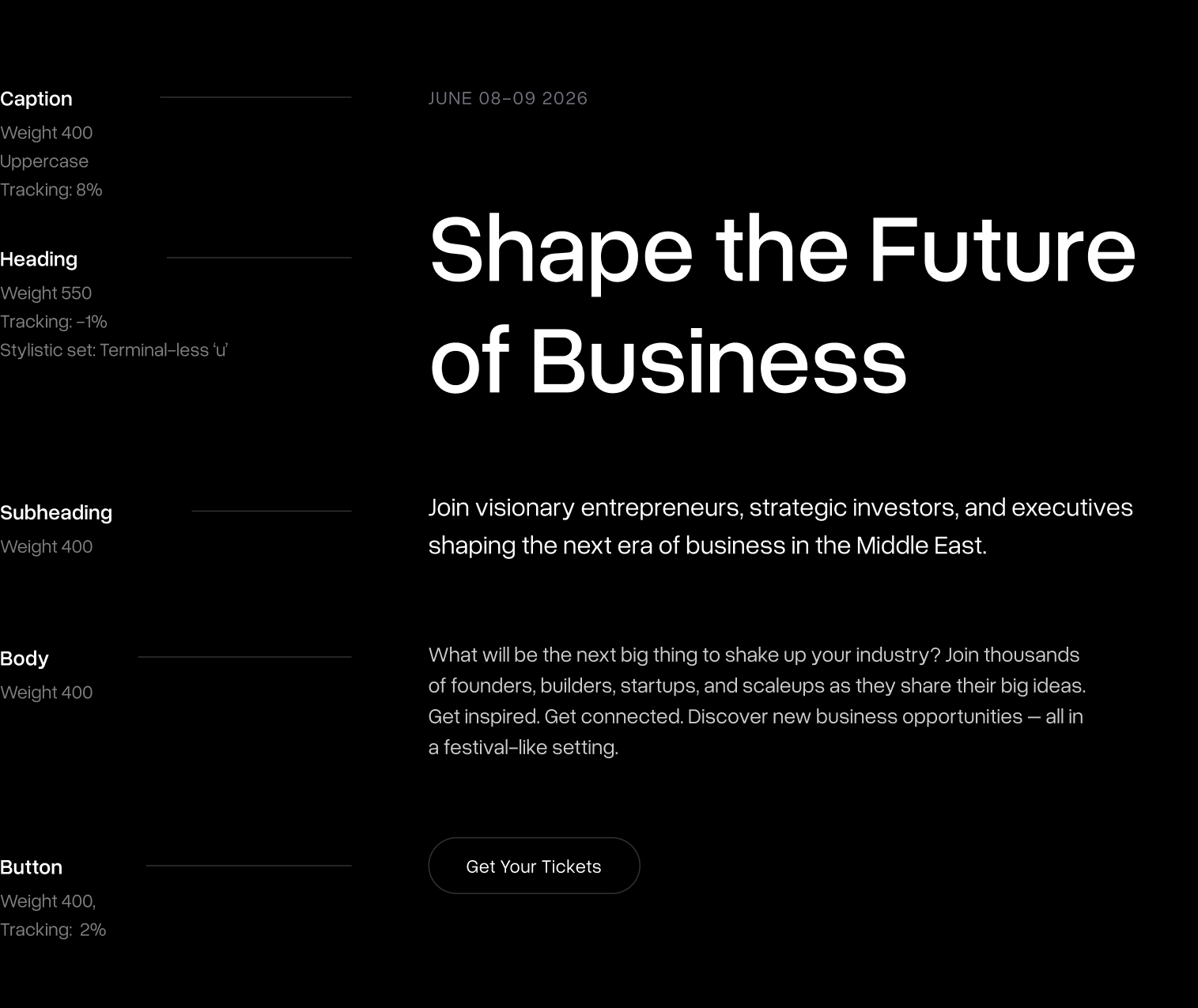 Our main typeface, Overused Grotesk, has been carefully selected to embody the professional, innovative, and clear voice of the Beirut Business Forum. Its clean lines and modern aesthetic ensure readability and reinforce our brand’s premium and forward-looking identity. This font is consistently applied across all brand communications to maintain visual cohesion and strengthen brand recognition.
